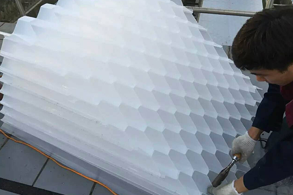 ? ? 蜂窩斜管填料除用于給水凈化和工業、生活廢水處理的除砂和快速沉淀,隔油分離以及尾礦濃縮等外,尤其對水廠和廢水處理工程的挖潛改造效益更佳。我們生產的六角蜂窩斜管填料采用進口乙丙共聚級塑料或食品級聚氯乙稀為材料,紅外線恒溫機械熱壓成型、尺寸準確、安全無毒,具有強度高、不變形、焊接牢固、耐腐蝕、耐老化、壁面光滑、不易積泥、支承簡便、現場組裝、運輸方便、處理水質符合《飲用水衛生標準》,是目前沉定處理效率高的裝置。